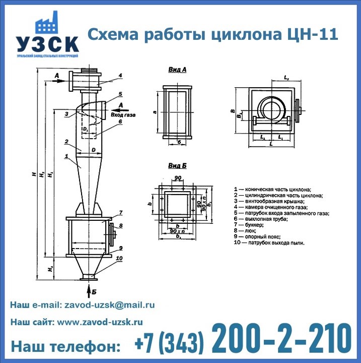 При этом ощутимой разницы в цене между универсальным и узконаправленным, подобранным в соответствии с конкретными техническими требованиями циклоном, нет. Стоимость воздухоочистительного оборудования типа циклон обусловлена маркой и толщиной стали, из которого он изготовлен, сложностью и специфичностью конструкции, наличием дополнительного оснащения (бункер, улитка и другие). При необходимости, на заводе УЗСК в Алма-ате будет изготовлен циклон по индивидуальным техническим чертежам заказчика.