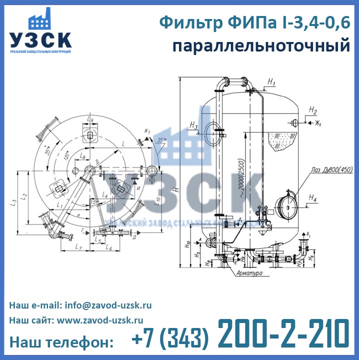 Производитель фильтров ФИПа параллельно-точных завод УЗСК предлагает два варианта комплектации ФИПаI 3,4-0,6 в Алма-ате: