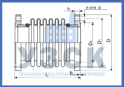 Осевой фланцевый неразгруженный компенсатор представляет сильфон из нержавеющей стали специальной многослойной конструкции. Тонкостенный гофрированный стакан принимает осевые и сдвижные нагрузки, деформируясь, но при этом фланцы остаются параллельными и перпендикулярными сечению труб.